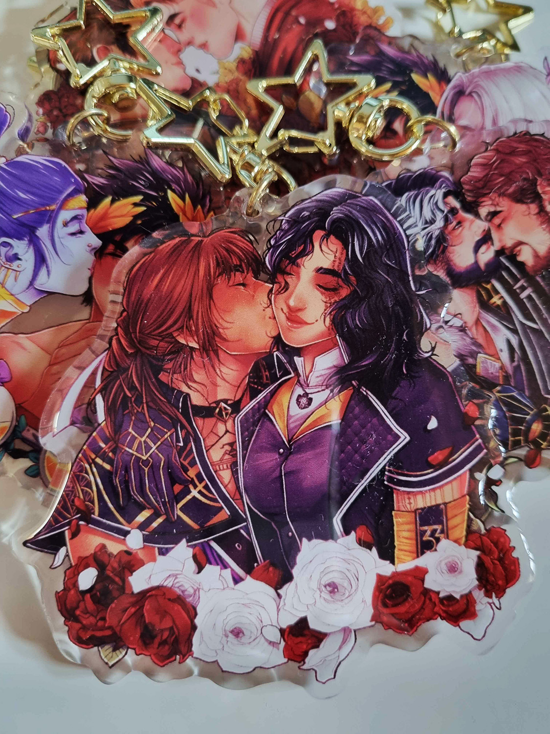 Clear Epoxy Acrylic keychain featuring Lune and Sciel from Clair Obscur Expedition 33. Double-sided (same design) Golden lock Size: 2.5''(63.5mm)