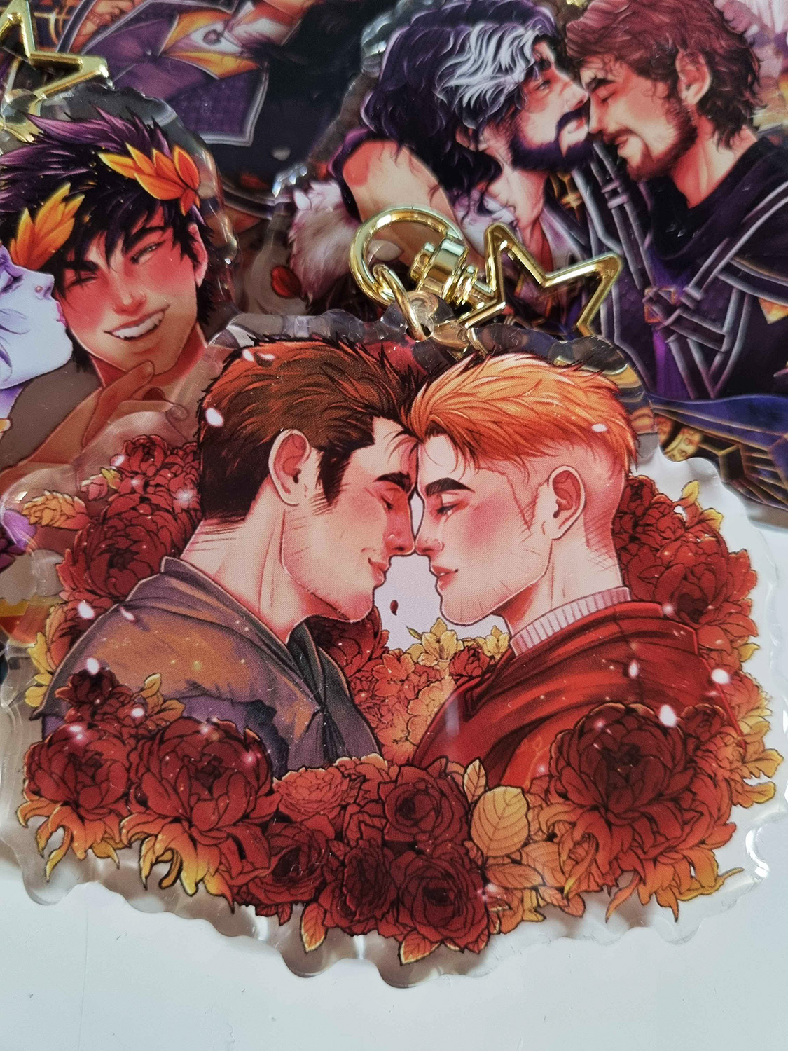Clear Epoxy Acrylic keychain featuring Hans and Henry from Kingdom Come Deliverance 2. Double-sided (same design) Golden lock Size: 2.5''(63.5mm)