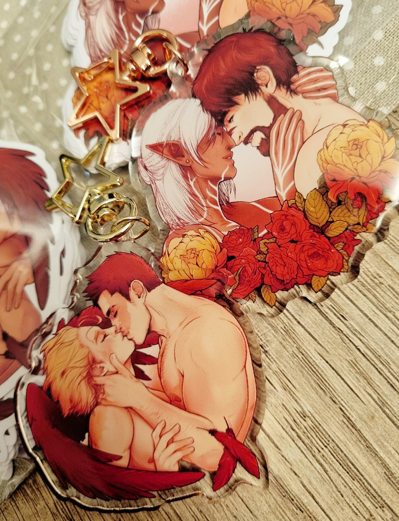 Clear Acrylic keychain featuring Fenris and Hawke from Dragon Age.