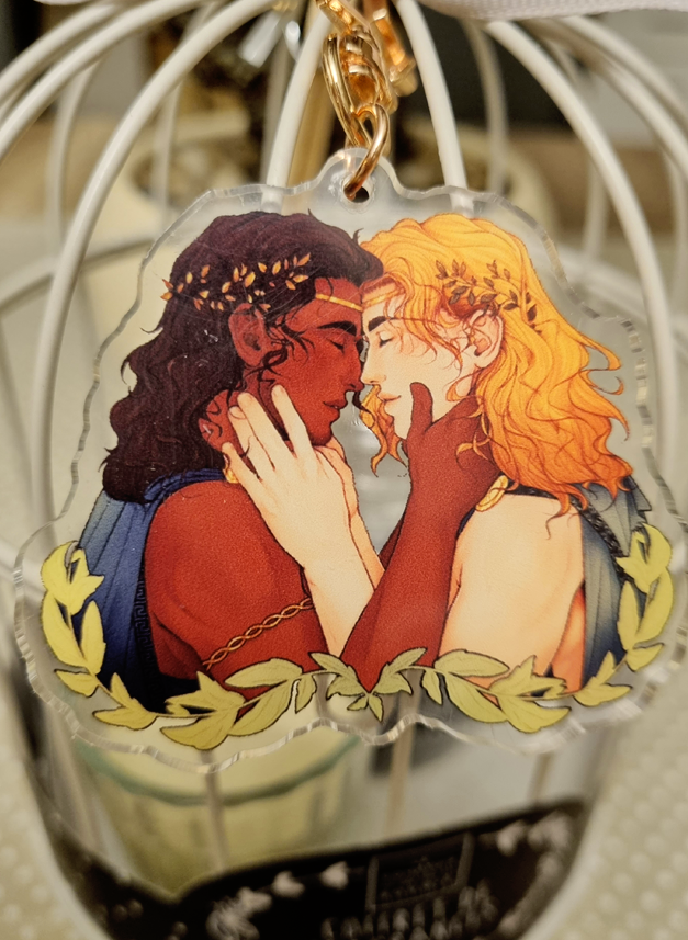 Clear Acrylic keychain featuring Achilles and Patrocle from the Iliad.