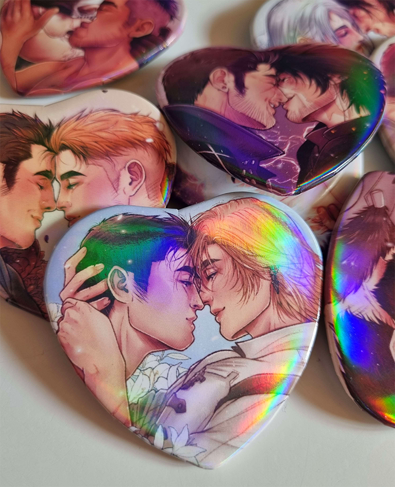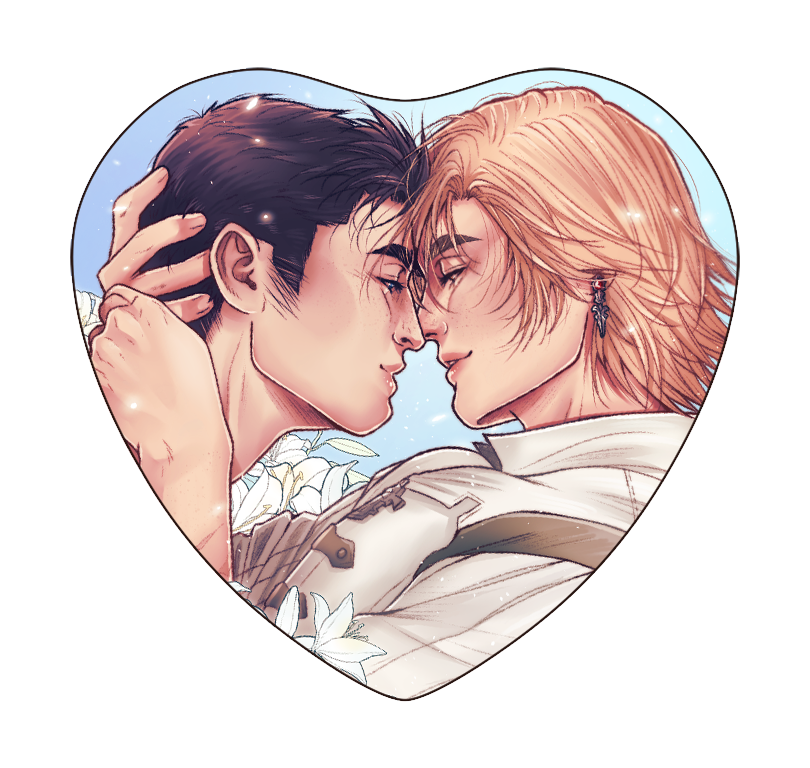 Heart shaped FFXVI button with Terence and Dion with holographic effect. 53*57mm