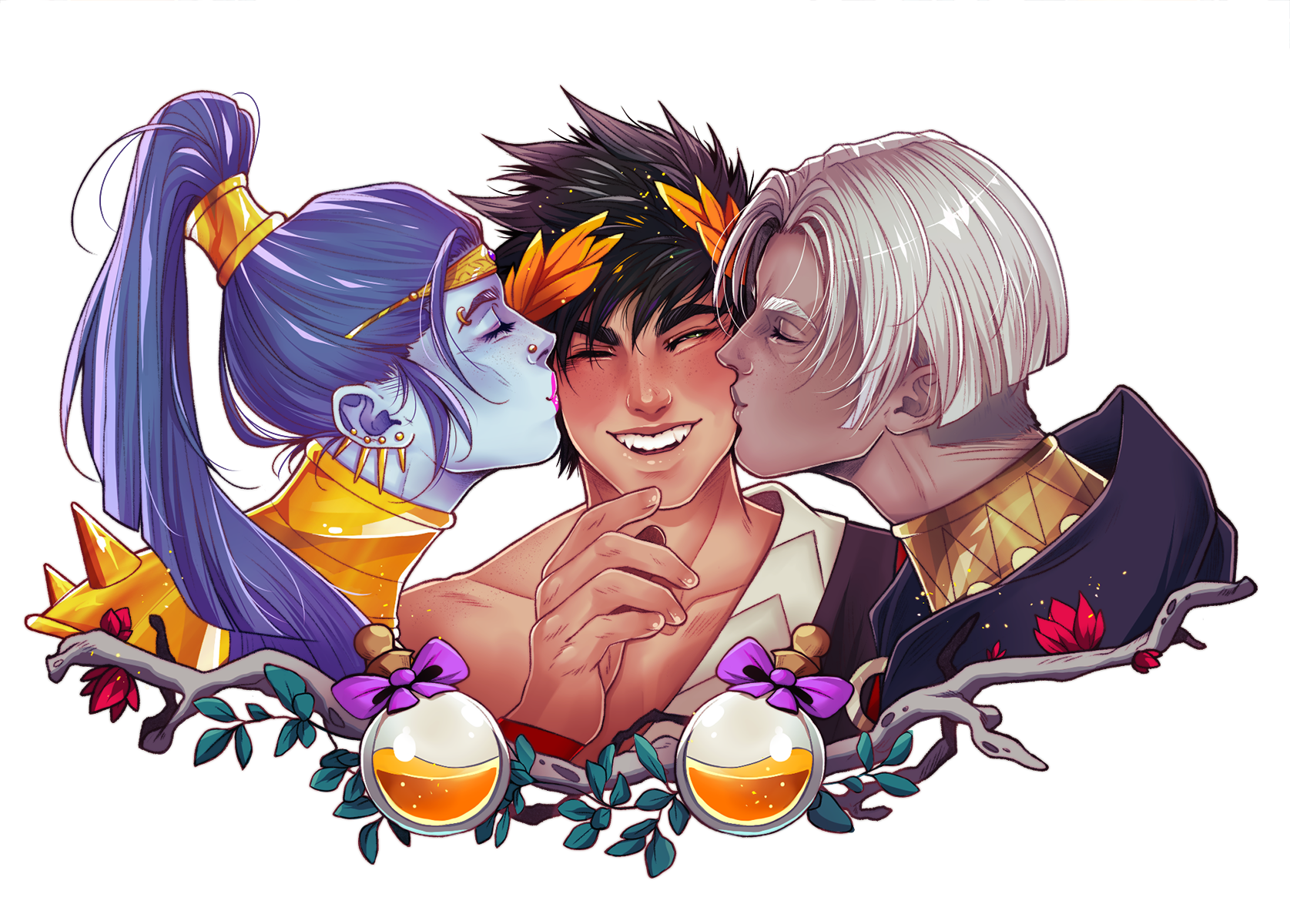 Vinyl Stickers of Meg, Thanatos and Zagreus from Hades. (3'' or 76.2mm)